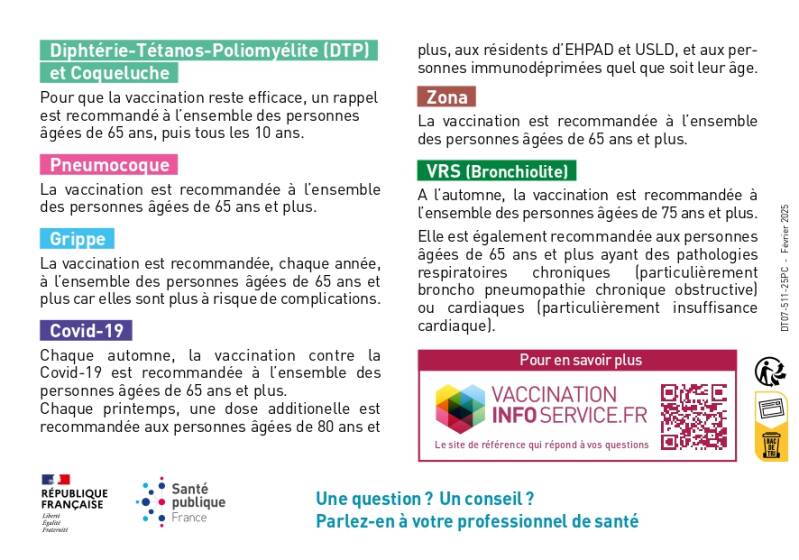 - Partager les recommandations du calendrier vaccinal officiel