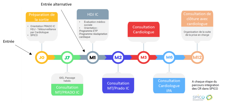 Ce parcours s’appuie sur l'Hospitalisation de Jour (HDJ) dédiée à l'Insuffisance Cardiaque, disponible au Centre Hospitalier de Tarbes et à la Polyclinique de l’Ormeau. Cette HDJ permet de réaliser le bilan et d'établir le Plan de Soins Personnalisé à M1.